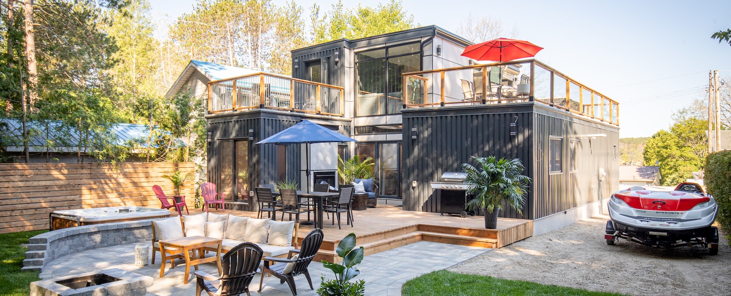 Our steel frame and panel modular system allows for the creation of customized, turnkey space. You tell us what you need and where you want it and we'll plunk it down for you. Backyard office, plunk. Pool house or bunkie, plunk. Yoga studio or gym, plunk. Options are endless...